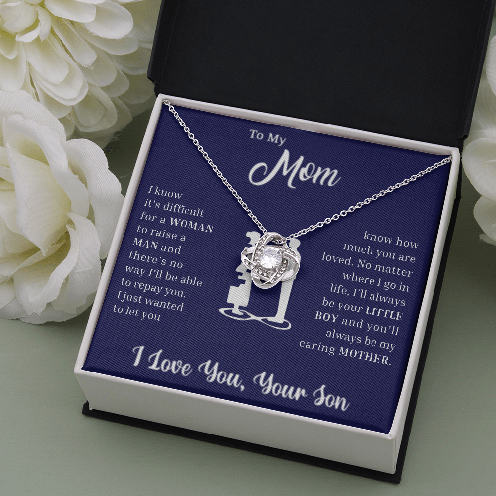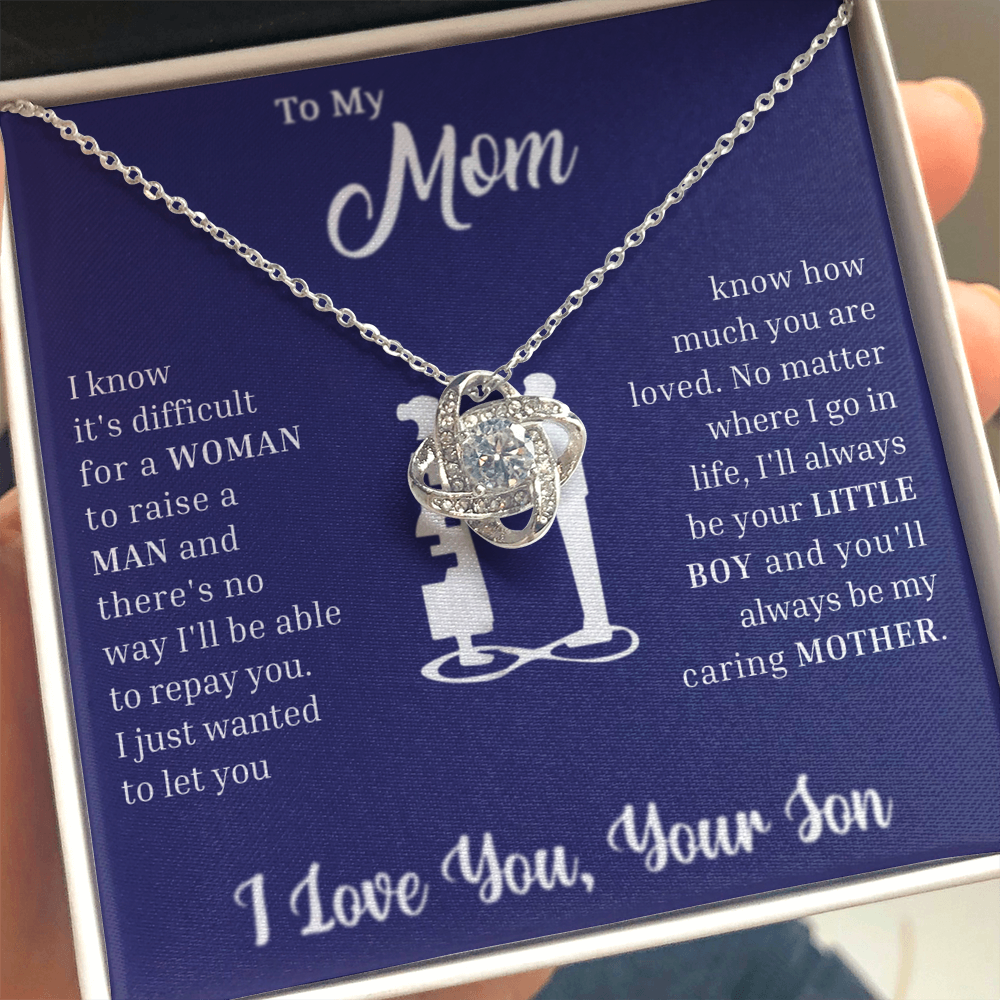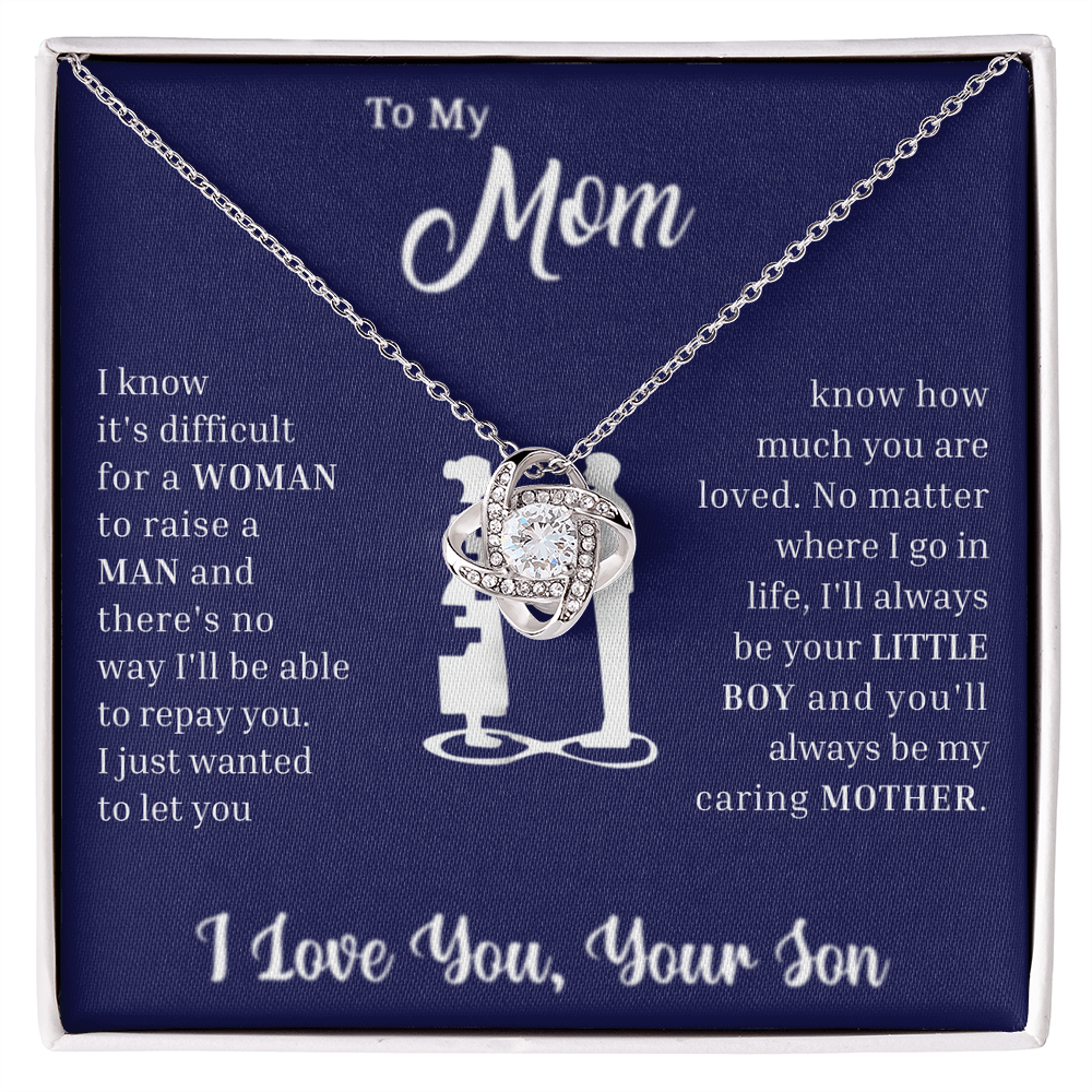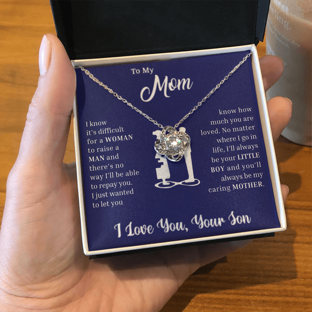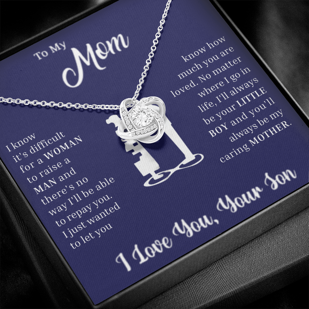 The Love Knot Necklace represents the unbreakable bond between a Son and his Mother.