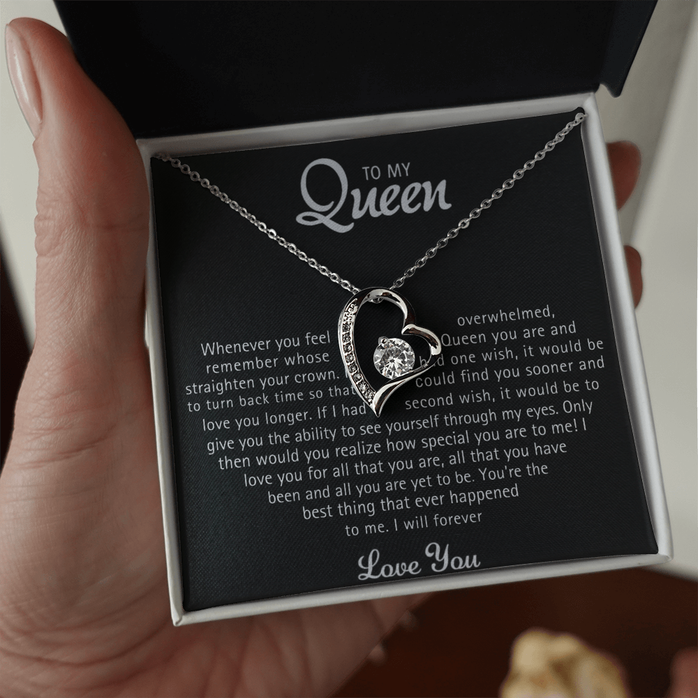 Show your love for your Queen with this amazing necklace with an emotional and beautiful message. Your Queen will love it!